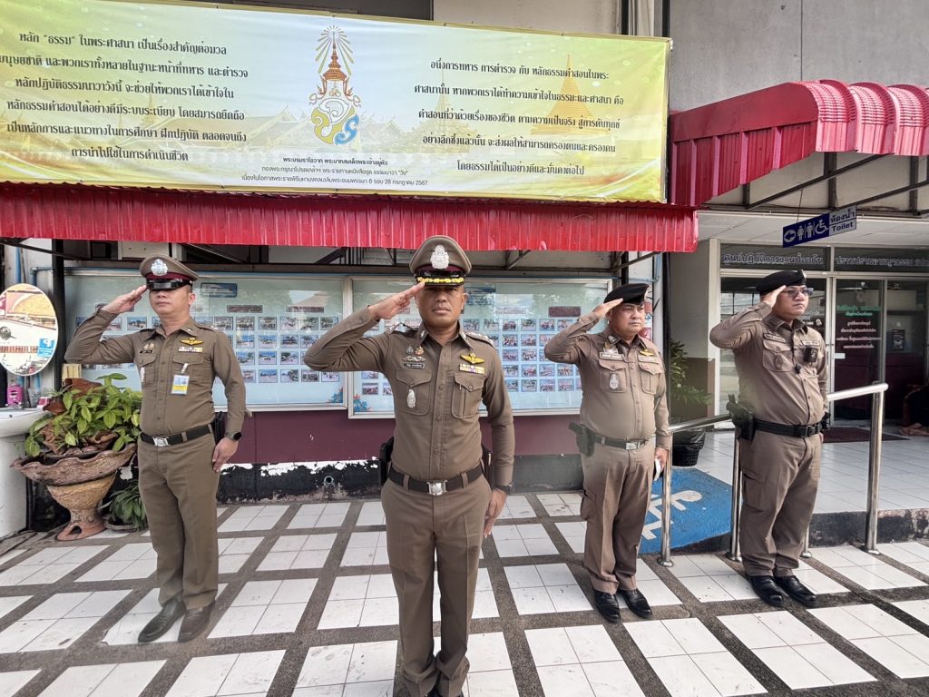 -นำข้าราชการตำรวจ สภ.ประโคนชัย ร่วมกิจกรรมเข้าแถว เคารพธงชาติ กล่าวคำสัตย์ปฏิญาณ อุดมคติของตำรวจ ตรวจเครื่องแต่งกาย ทรงผม ปฏิบัติ ตามระเบียบปฏิบัติตามนโยบาย ระเบียบแบบแผนสำนักงานตำรวจแห่งชาติ