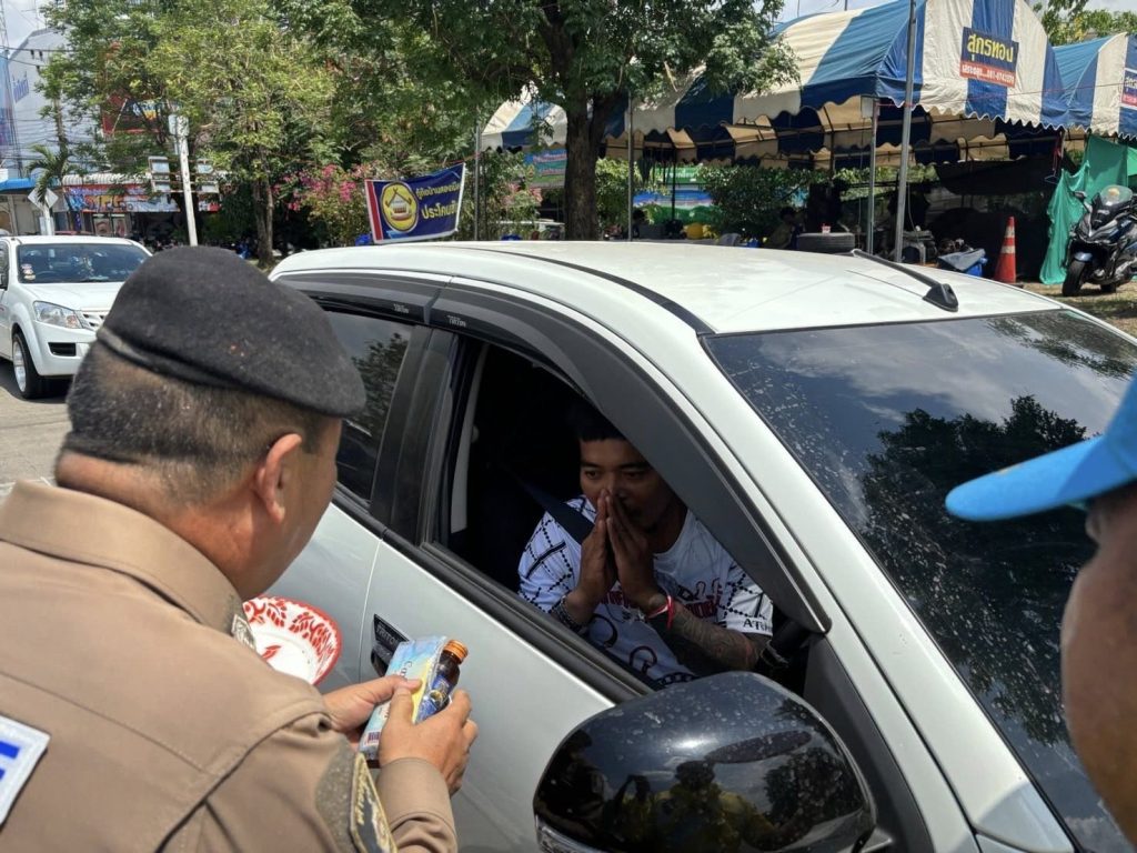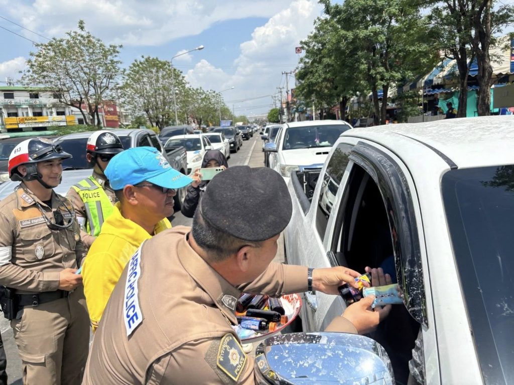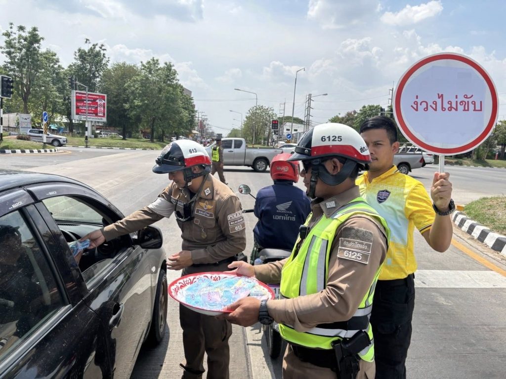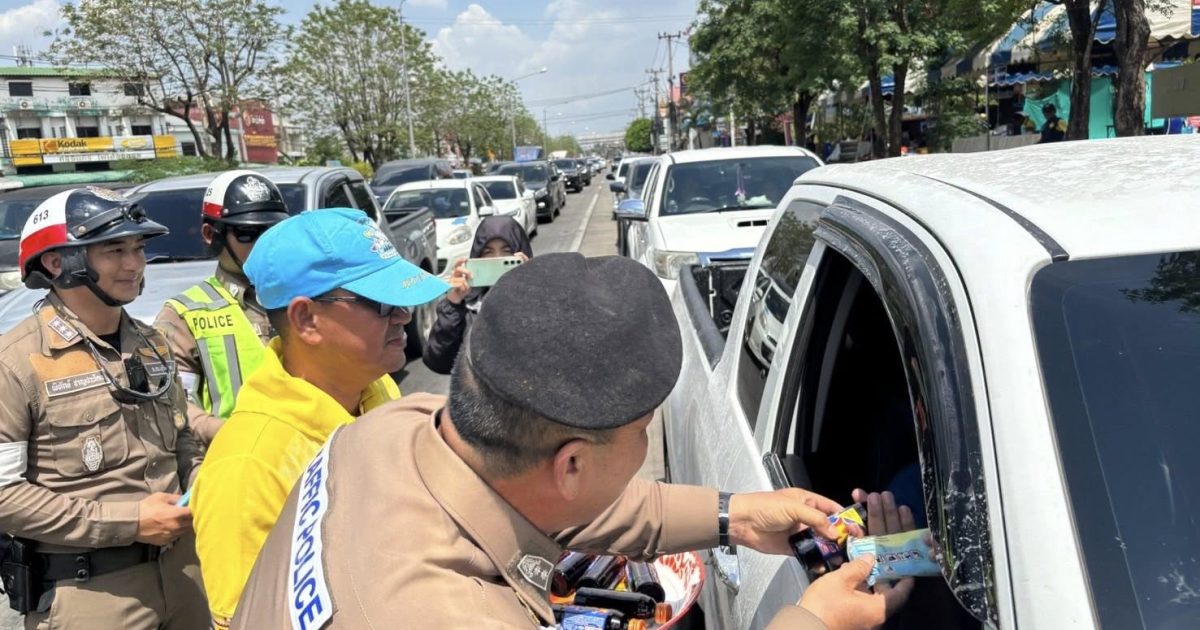 วันที่ 16 เม.ย. 68 เวลา 13.30 น. พ.ต.อ.วิษณุ อาภรณ์พงษ์ ผกก.สภ.ประโคนชัยพร้อมข้าราชการตำรวจชุดจิตอาสา สภ.ประโคนชัย ดำเนินการรณรงค์ “ง่วงไม่ขับ” พร้อมมอบเครื่องดื่มและผ้าเย็นแก่ประชาชนที่ขับรถสัญจรผ่าน เพื่อความปลอดภัยแก่ผู้ใช้รถใช้ถนนในช่วงเทศกาลสงกรานต์ ณ บริเวณสี่แยกประโคนชัย ต.ประโคนชัย อ.ประโคนชัย จว.บุรีรัมย์